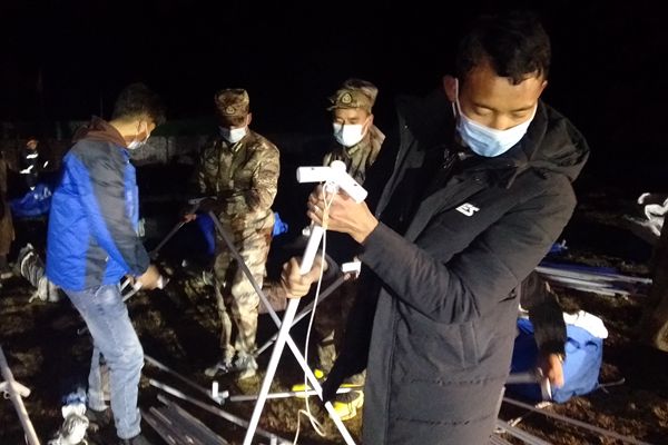 4月1日當(dāng)晚,長(zhǎng)須貢瑪鄉(xiāng)紀(jì)委干部跟隨救援隊(duì)深入震中江瑪村等地開(kāi)展災(zāi)情摸排和群眾救助工作,確保各類救災(zāi)物資及時(shí)發(fā)放到位。圖為長(zhǎng)須貢瑪鄉(xiāng)紀(jì)檢監(jiān)察干部在受災(zāi)群眾臨時(shí)安置點(diǎn)參與救災(zāi)帳篷搭建工作。