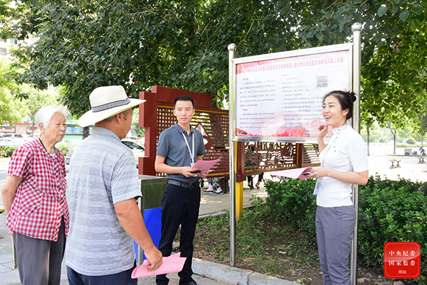 河北省邯鄲市永年區(qū)紀(jì)委監(jiān)委在村委會、醫(yī)院、公園等公眾場所懸掛公示牌,向群眾發(fā)放告知書,對群眾身邊腐敗和作風(fēng)問題整治內(nèi)容進(jìn)行現(xiàn)場講解,提高群眾知曉率。(河北省邯鄲市永年區(qū)紀(jì)委監(jiān)委 朱照坤 攝)
