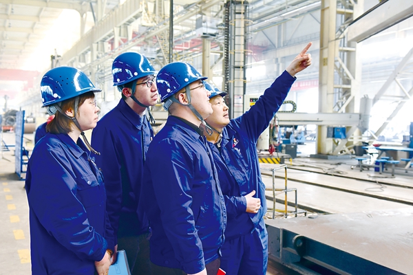 圖為蘭州蘭石集團(tuán)有限公司紀(jì)檢監(jiān)察干部在煉化公司裝焊車間監(jiān)督重點項目推進(jìn)情況。俞駿濤 攝