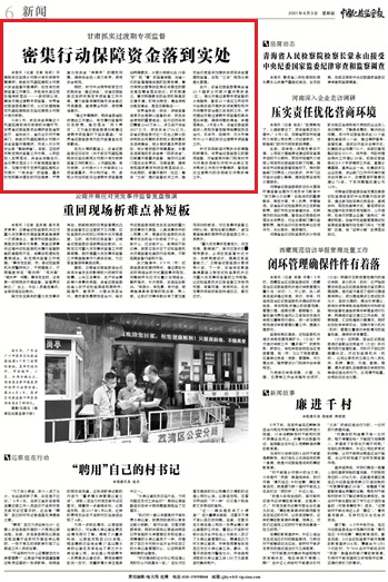 今年2月,抓住資金保障這個(gè)鞏固拓展和有效銜接的關(guān)鍵環(huán)節(jié),甘肅省紀(jì)委監(jiān)委派出調(diào)研組赴省財(cái)政廳、省扶貧辦、省農(nóng)業(yè)農(nóng)村廳等部門,就做好鞏固拓展和鄉(xiāng)村振興資金監(jiān)督開展調(diào)研,并深入天水市甘谷縣“解剖麻雀”。目前,正在研究制定相關(guān)監(jiān)督工作方案,從財(cái)政投入政策落實(shí)、資金全流程運(yùn)行、各級責(zé)任落實(shí)3個(gè)方面梳理監(jiān)督任務(wù),加強(qiáng)對用于支持鞏固拓展和鄉(xiāng)村振興“7類資金”的監(jiān)督,重點(diǎn)防范和解決潛在的風(fēng)險(xiǎn)隱患,嚴(yán)肅查處向資金“伸黑手”的腐敗問題,確保資金投入有力有序,使用安全規(guī)范。