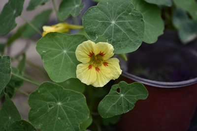 簡(jiǎn)介:旱金蓮,一年生肉質(zhì)草本。花期6-10月,果期7-11月。葉片別致,極具觀賞價(jià)值,可配植花壇,還可用于盆栽、吊盆?;ㄋ幱茫哂星鍩峤舛?、止血、消炎等功效。嫩莖葉可調(diào)制涼菜,嫩果可腌制醬菜。
