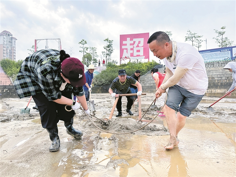 廣西壯族自治區(qū)柳州市融安縣紀委監(jiān)委聞“汛”而動,緊盯防汛統(tǒng)籌協(xié)調(diào)等關(guān)鍵環(huán)節(jié)開展全程監(jiān)督檢查。圖為日前,該縣紀檢監(jiān)察干部在河東龍舟廣場開展災(zāi)后清淤工作。覃燕 攝