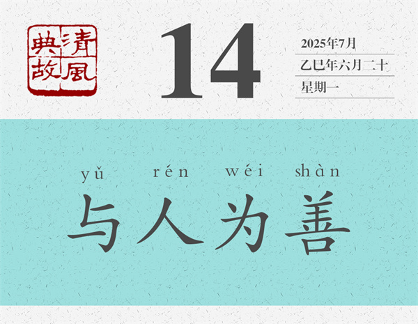 對(duì)“與人為善”中的“與”,有不同的理解。楊伯峻先生認(rèn)為,“與”是偕同的意思,“與人行善”即偕同別人一道行善。朱熹《孟子集注》則認(rèn)為“與,猶許也,助也”,即贊許、幫助的意思。他把最后兩句理解為:“取彼之善,而為之于我,則彼益勸于為善矣,是我助其為善也。能使天下之人皆勸于為善,君子之善,孰大于此。”意思是,取來(lái)別人的善,而我付諸實(shí)行,別人就更加努力行善了,這是我?guī)椭猩?。能讓天下都勤于行善,君子的善,再也沒(méi)有比這個(gè)更大的了。