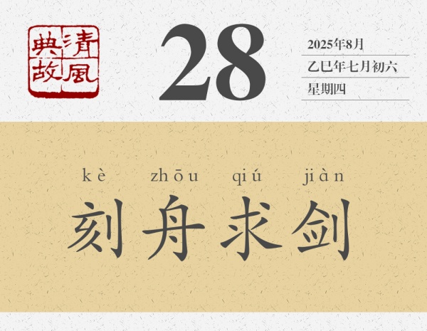 東西遺失了,沒有找回來,雖然很遺憾,但并沒有人覺得可笑。楚人劍掉到了江里,同樣沒有找到劍,但為什么我們不覺得遺憾,反而覺得可笑呢?那個人的劍掉到江里了,那個人的腦子是不是也掉到江里了呢?后人即以“刻舟求劍”為典,比喻墨守成規(guī),不知變通,處理事情的方法、解決問題的辦法不能隨著形勢的變化而變化,不能隨著事物的發(fā)展而發(fā)展。也用來形容事過境遷,追悔莫及。南宋高僧宗杲《頌古》其四十曰:“出門握手話分?jǐn)y,古路迢迢去莫追。卻笑波心遺劍者,區(qū)區(qū)空記刻舟時。”黃庭堅詩《追憶余泊舟西江事次韻》:“老大無機如漢陰,白鳥不去相知深。往事刻舟求墜劍,懷人揮淚著亡簪。”其中的“空記刻舟時”“刻舟求墜劍”,都是對“刻舟求劍”的化用。