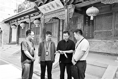 甘肅省張掖市紀(jì)委監(jiān)委聚焦文物文化遺址保護、規(guī)劃審批、資金撥付使用等關(guān)鍵環(huán)節(jié),強化日常監(jiān)督。圖為該市紀(jì)檢監(jiān)察干部在甘州區(qū)西來寺巷歷史文化街區(qū)了解有關(guān)情況。王夢婷 攝
