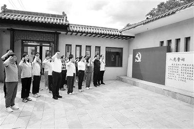 近日,山西省紀(jì)委監(jiān)委機(jī)關(guān)部分黨員在晉綏八分區(qū)(專署)舊址開展“傳承紅色基因,砥礪初心使命”主題黨日活動(dòng)。圖為黨員重溫入黨誓詞。王鵬波 攝