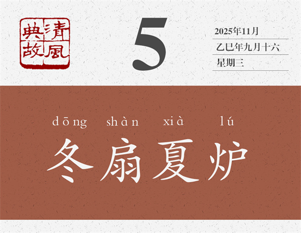 以冬進(jìn)爐,以夏奏扇,明明是違背常識(shí)的事,為什么還有人喜歡做呢?所以,后世即以“冬扇夏爐”為典,形容一個(gè)人的言論或行動(dòng)不合時(shí)宜,不切實(shí)際。清人張祥齡《詞論》:“左春右秋,冰蟲之見,生今反古,是冬箑(shà)夏爐,烏乎能。”箑,扇子。揚(yáng)雄《方言》:“自關(guān)而東謂之箑,自關(guān)而西謂之扇。”