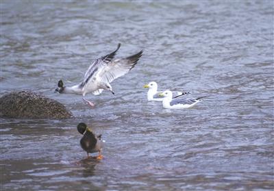 黑尾鷗和野鴨。王景輝 攝