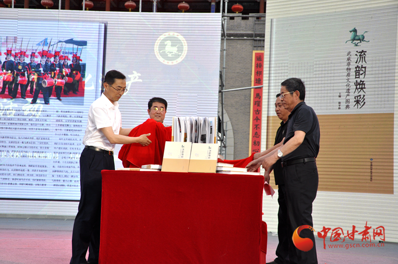 活動中,《流韻煥彩——武威非物質文化遺產(chǎn)圖典》揭幕并首發(fā)?!读黜崯ú?mdash;—武威非物質文化遺產(chǎn)圖典》是由武威市文體廣電和旅游局組織編寫,讀者出版集團旗下的甘肅科學技術出版社出版,先后歷時5載。該圖典將散落在武威廣袤大地上的璀璨珍珠串連起來,將牽動著記憶深處的濃濃情思匯聚起來,展示了一個歷史武威、一個文化武威、一個多彩武威,是解讀武威的最好途徑。該圖典共收錄了84個非遺項目,81位項目代表性傳承人,用2000多張圖片和文字介紹,全方位、多角度展示了武威市非遺項目的獨特性、活態(tài)性、傳承性、流變性、綜合性、民族性、地域性等基本特點。該圖典最大的亮點,就是在國家級、省級項目中融入互聯(lián)網(wǎng)思維,加入二維碼視頻鏈接,對項目進行動態(tài)視頻展示,讓《圖典》不僅可看、可讀,而且能說會動,能唱會跳,實現(xiàn)了非遺項目活態(tài)傳承的創(chuàng)新。