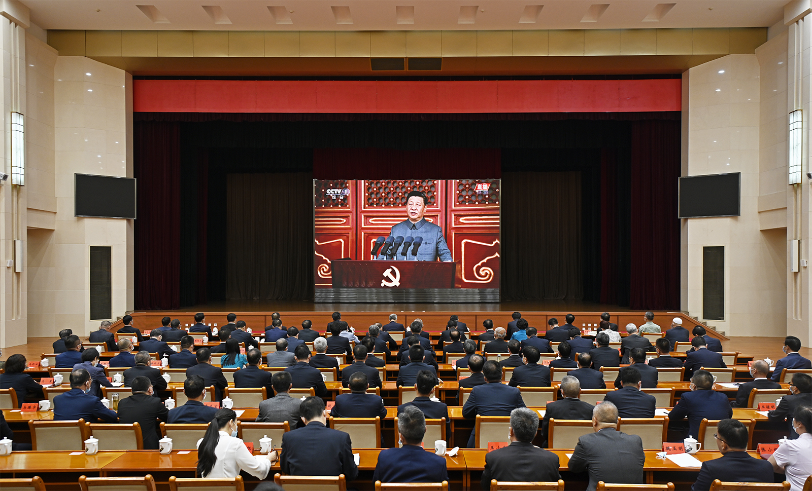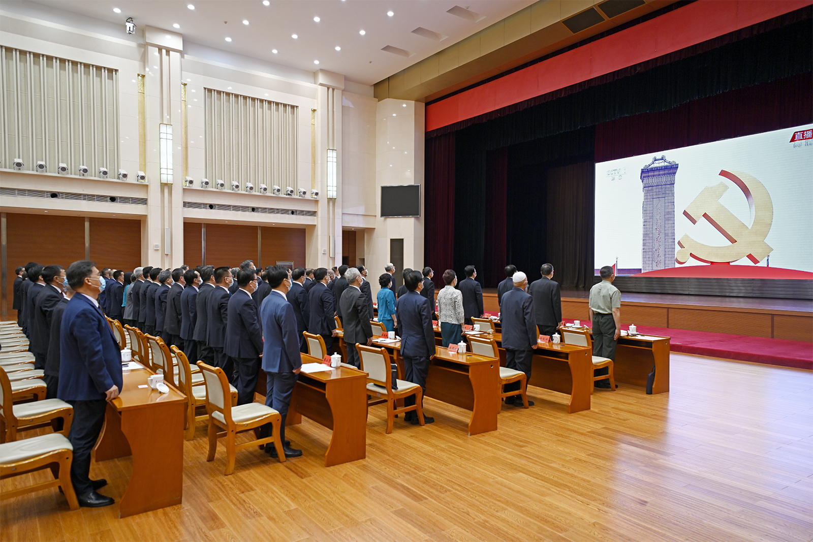 尹弘、任振鶴、歐陽堅(jiān)、孫偉、馬廷禮、劉昌林、胡焯、李元平、王嘉毅、石謀軍、蒲永能、朱天舒,嘉木樣·洛桑久美·圖丹卻吉尼瑪、馬青林、陳克恭、吳明明,張世珍、李沛興、何偉、余建、程曉波、劉長(zhǎng)根、張錦剛,陳青、德哇倉、馬文云、王銳、郭承錄、康國(guó)璽、尚勛武、贠建民、郭天康、霍衛(wèi)平、袁占亭,張海波、朱玉,馬小潔,以及李德新、李志勛、王建太參加收看。