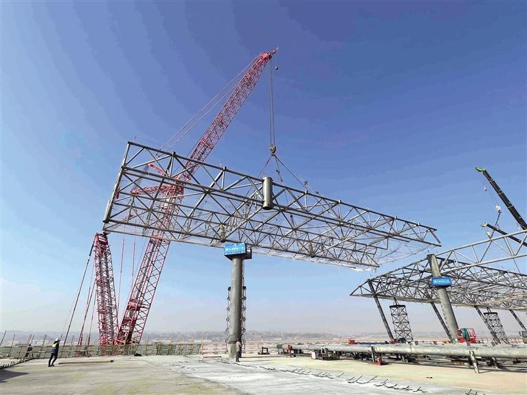 記者了解到,蘭州中川國際機(jī)場三期擴(kuò)建工程新建航站樓共有A、B、C、D四條指廊,是航站樓重要組成部分,每條指廊長117米、寬90米,屋蓋投影面積20.45萬平方米,建筑面積39.73萬平方米。此次封頂?shù)臑楹秸緲荄指廊部分,由支撐體系和屋蓋鋼桁架結(jié)構(gòu)組成,形成了一個(gè)不規(guī)則的自由曲面空間,總投影面積達(dá)到了29500平方米,總重量達(dá)2800多噸。根據(jù)總體計(jì)劃,蘭州中川國際機(jī)場三期航站樓工程鋼結(jié)構(gòu)將于2022年底實(shí)現(xiàn)全面封頂。