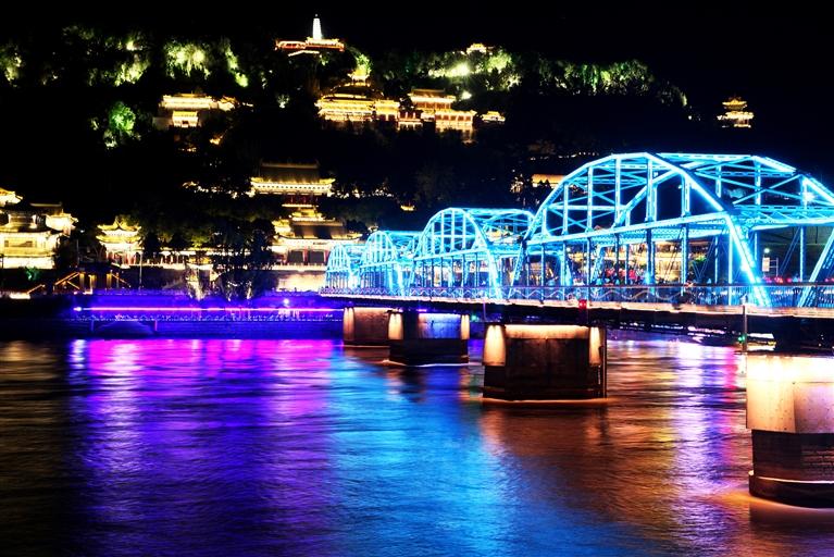 中國(guó)甘肅網(wǎng)5月24日訊 據(jù)蘭州日?qǐng)?bào)報(bào)道記者 張建平 攝)為迎接甘肅省第十四次黨代會(huì)勝利召開,我市在標(biāo)志性橋梁、廣場(chǎng)及樓體精心組織以“蘭州藍(lán)”為主題的燈光秀,營(yíng)造濃厚的喜慶氛圍。中山橋、黃河樓等處燈光展示“蘭州藍(lán)”,這顯示了全市上下守護(hù)碧水藍(lán)天的信心,更昭示著全市黨員干部堅(jiān)定垂范清廉蘭州,共建政治生態(tài)“蘭州藍(lán)”的決心。