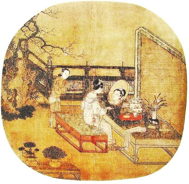 清代佚名畫家的《磨鏡圖》,右下角的工匠在磨鏡。