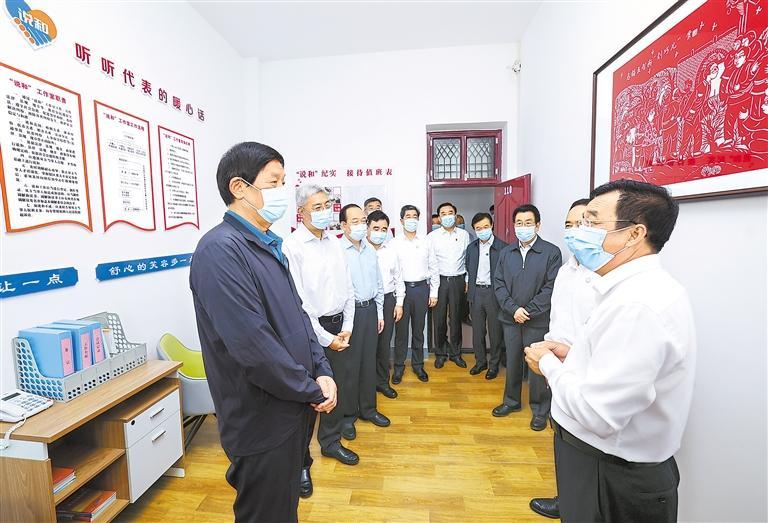 8月26日至28日,中共中央政治局常委、全國(guó)人大常委會(huì)委員長(zhǎng)栗戰(zhàn)書在甘肅就黃河保護(hù)法立法進(jìn)行調(diào)研。這是8月26日,栗戰(zhàn)書在慶陽(yáng)市西峰區(qū)后官寨鎮(zhèn)人大代表之家調(diào)研。新華社記者 龐興雷