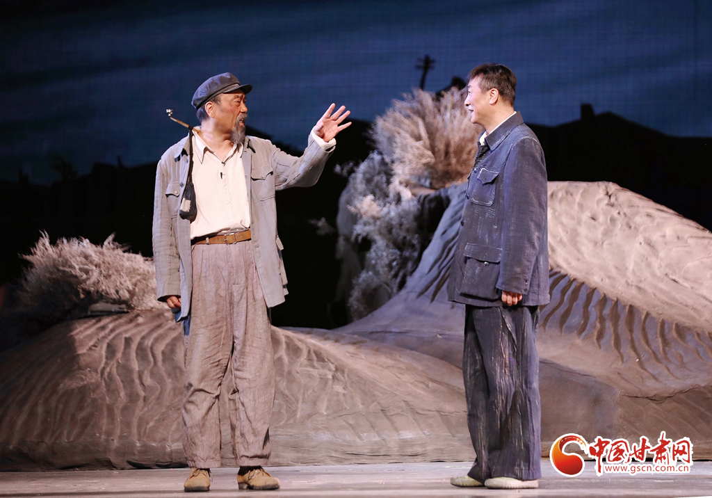 隨著演出大幕緩緩開(kāi)啟,原甘肅省話劇院國(guó)家一級(jí)演員、國(guó)務(wù)院政府特殊津貼專家、中國(guó)戲劇表演梅花獎(jiǎng)獲得者康愛(ài)石,國(guó)家一級(jí)演員、中國(guó)話劇“金獅獎(jiǎng)”獲得者常貴順,國(guó)家一級(jí)演員、中國(guó)戲劇表演梅花獎(jiǎng)獲得者祁寶泉等“老甘話人”,以生動(dòng)的表演,藝術(shù)再現(xiàn)了年逾半百的“六老漢”卷起鋪蓋挺進(jìn)八步沙,用愚公精神創(chuàng)造的綠色奇跡。