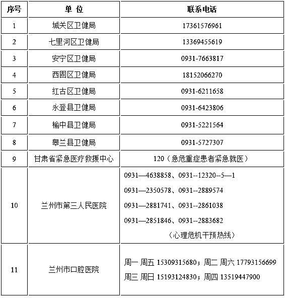 本報訊(奔流新聞·蘭州晨報記者王思璇)為進一步做好蘭州市疫情防控期間“非綠碼”患者的醫(yī)療救治工作,滿足群眾日常醫(yī)療服務(wù)需求,蘭州市動態(tài)更新并公布了市域疫情防控期間“非綠碼”定點醫(yī)院24小時咨詢熱線、醫(yī)療服務(wù)咨詢聯(lián)系電話。