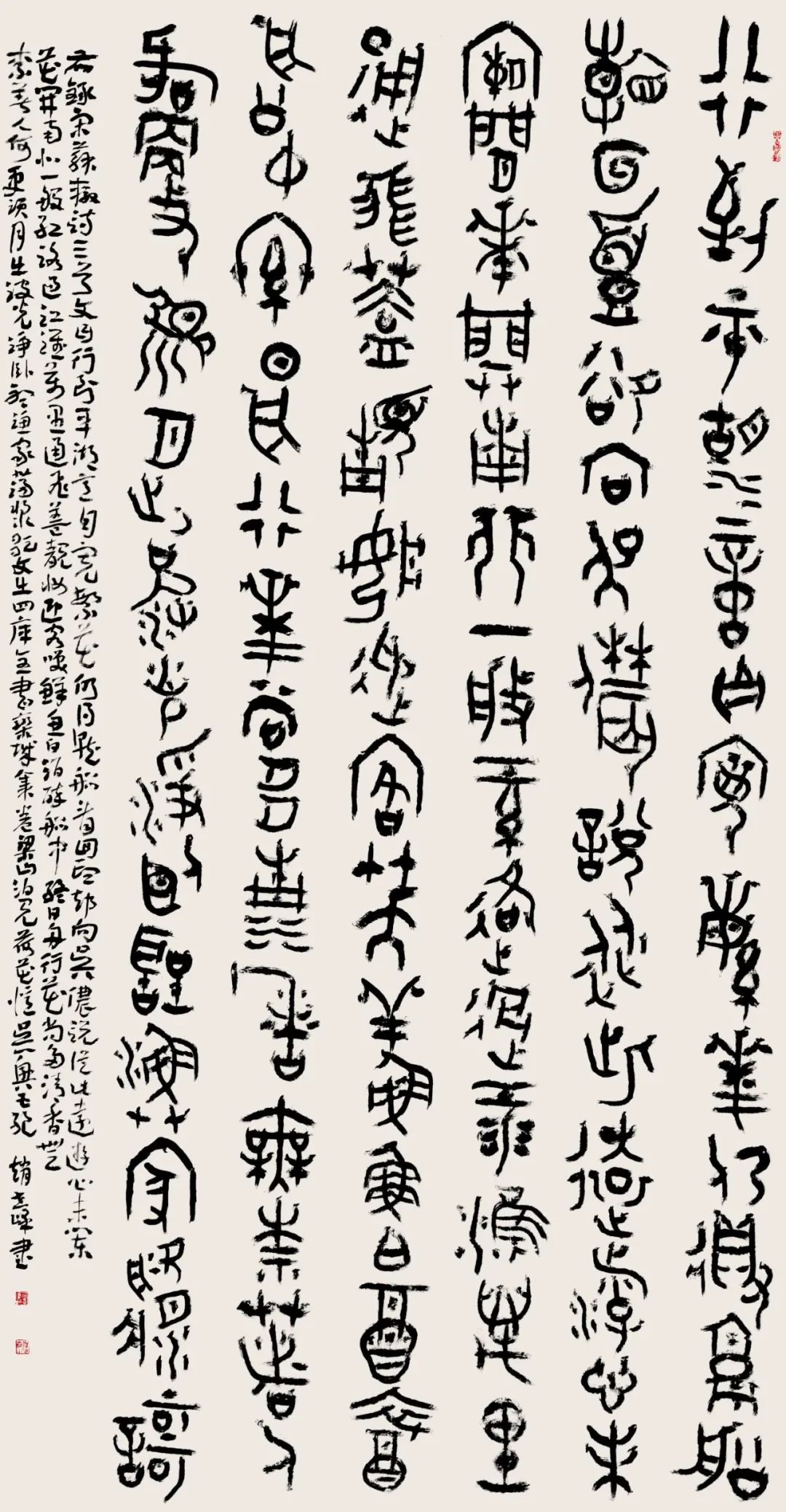 展覽作品風(fēng)格多樣,立意高遠(yuǎn)。作品模仿少、創(chuàng)造多,減少外在形式,力求豐富內(nèi)涵。“二王”體系雖然占主流,但是寫經(jīng)、漢簡占有相當(dāng)大的數(shù)量,百花齊放,百花爭艷。極大地改變了“有時(shí)展出的作品還存在著抄寫代替書寫,不諳文句,不解文意,不識(shí)文字,不具文心”的情況。書法家們把寄情抒懷與記言存史相結(jié)合,將個(gè)人藝術(shù)追求與時(shí)代發(fā)展潮流相貫通,顯示了深厚扎實(shí)的藝術(shù)功力,呈現(xiàn)了創(chuàng)新發(fā)展的最新成果。