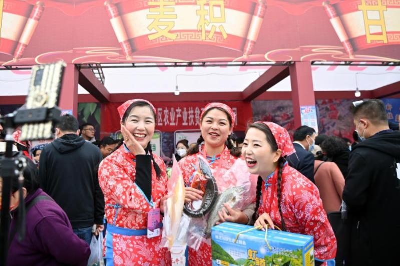 3月17日,“村花”直播團直播帶貨,助力“甘味”產銷。當日,甘肅省“田間行甘味產銷季”暨“云品甘味”促消費活動啟動儀式在主會場天水市舉行。