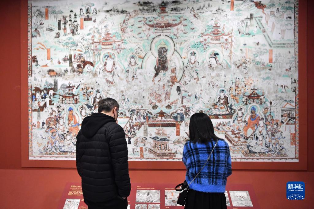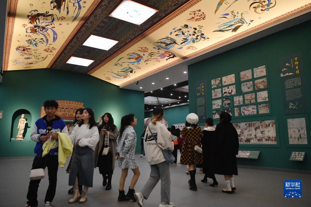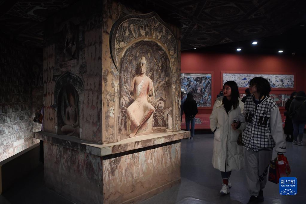 4月5日,觀眾在敦煌研究院蘭州分院敦煌藝術(shù)館參觀。新華社記者 陳斌 攝