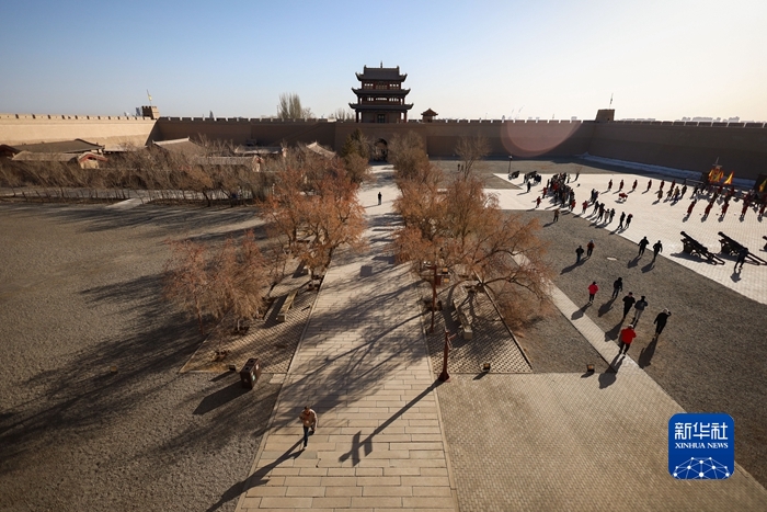 3月4日,游客在嘉峪關關城景區(qū)參觀游覽。新華社記者 范培珅 攝