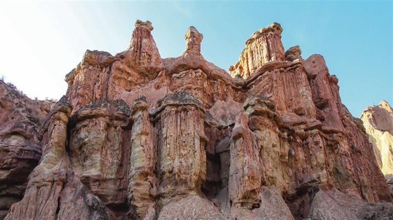 張掖土林地貌主要集中在該市肅南縣境內(nèi),平均海拔高度1700米左右,面積約20平方公里。土林發(fā)育齊全、類型多樣,從幼年時(shí)期的細(xì)溝土牙,到中青年期的圓盆土柱,直至成熟期的坡地殘柱,均有呈現(xiàn),完整地展示了土林地貌的形成與演化過(guò)程。