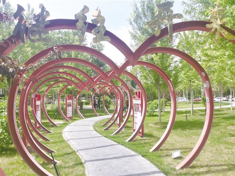 高速南口進蘭州至工坪路,有一片綠地格外醒目,這里便是頗具特色的中車·拾光公園,是我市實施“退城入園”后首個在廠區(qū)原址開發(fā)建設的文化游園。