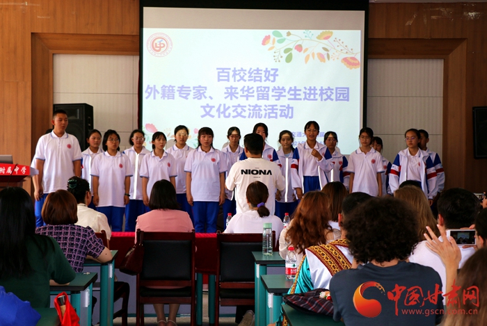 中國甘肅網(wǎng)6月26日訊 (西北角·中國甘肅網(wǎng)記者 張?zhí)m琴)6月25日下午,“百校結好”倡議之“外籍專家、來華留學生進校園”文化交流活動在蘭州交通大學附屬中學舉行。來自蘭州交通大學國際交流學院的外籍教師、來華留學生與該校師生熱情的互動交流,為今年“百校結好”倡議系列活動締結友誼之花再結“碩果”。