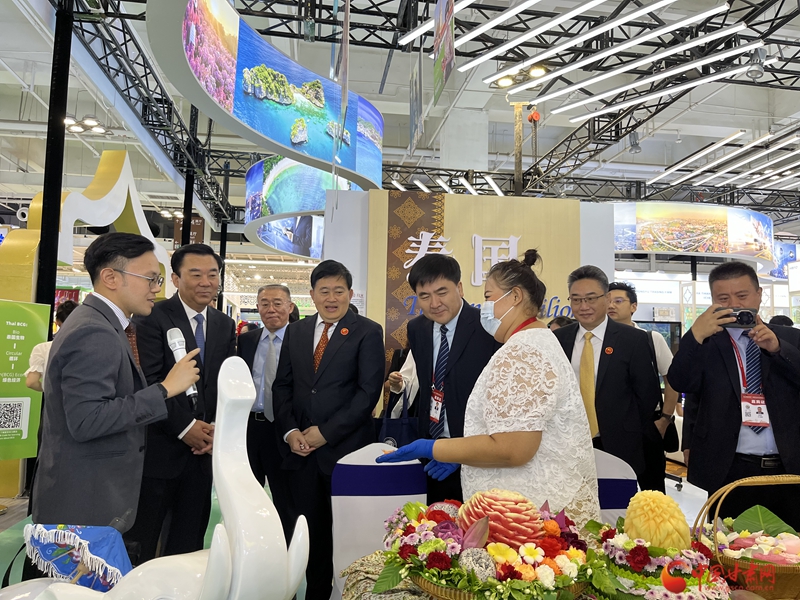 泰國國家館展覽面積300平方米,由泰國駐西安總領事館牽頭組織參展,展區(qū)設計采用白金色為主色調,簡潔明亮,富有泰國特色。主要展示泰國特色文化、企業(yè)和產品。展館整體劃分為接待區(qū)、洽談區(qū)、舞臺表演互動區(qū)、泰國雕刻體驗區(qū)、泰式按摩體驗區(qū)、模擬泰國旅游景點拍照區(qū)及產品展示區(qū)等,通過造型、多媒體、圖片及表演等形式,以Food 美食、Fighting 泰拳、Film 電影、Fashion 時尚和 Festival 節(jié)日等多元素,全面展示泰國文化的多元、包容、開放與創(chuàng)新的特點。參展企業(yè)共22家,主要展品涵蓋食品、化妝品、居家用品及保健按摩產品等。