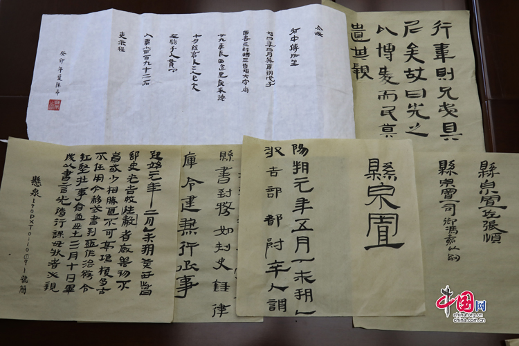 7月31日,蘭州大學(xué)古文字學(xué)強(qiáng)基計(jì)劃同學(xué)展示臨摹簡(jiǎn)牘的書(shū)法作品。中國(guó)網(wǎng)記者 鄭偉 攝