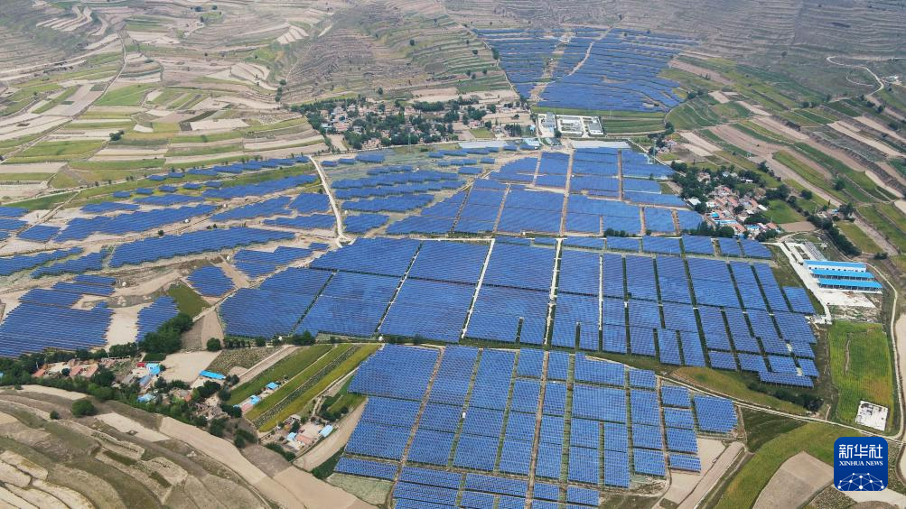 這是在通渭縣榜羅鎮(zhèn)四新村拍攝的光伏電站(9月9日攝,無(wú)人機(jī)照片)。新華社發(fā)(王克賢 攝)