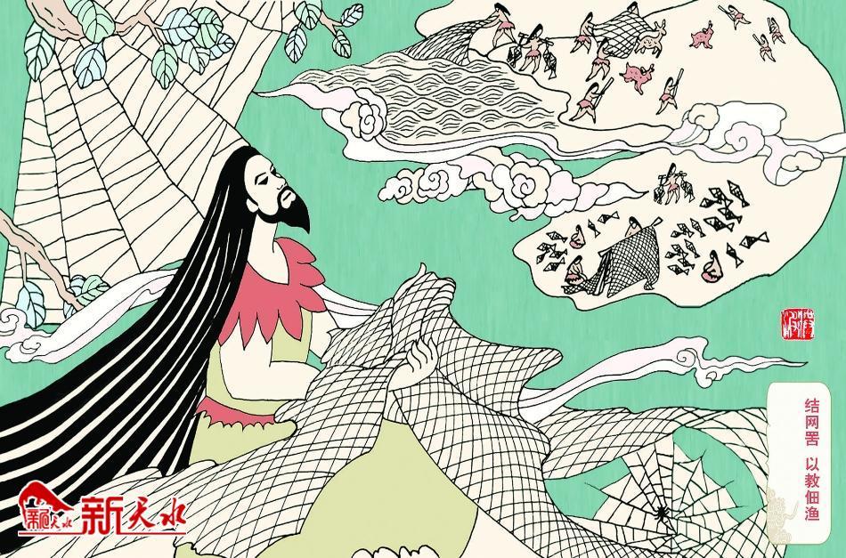 之后,大家又從伏羲編織的漁網(wǎng)中得到啟發(fā),并仿照他的方法編織出了鳥網(wǎng),人們?cè)儆螟B網(wǎng)去捕鳥。這些發(fā)明創(chuàng)造,為改善人們的生活條件起到了積極作用。