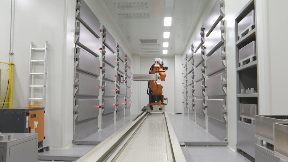 在一家企業(yè)的干燥車間內(nèi),六軸機器人正在搬運成品電池。(受訪單位供圖)