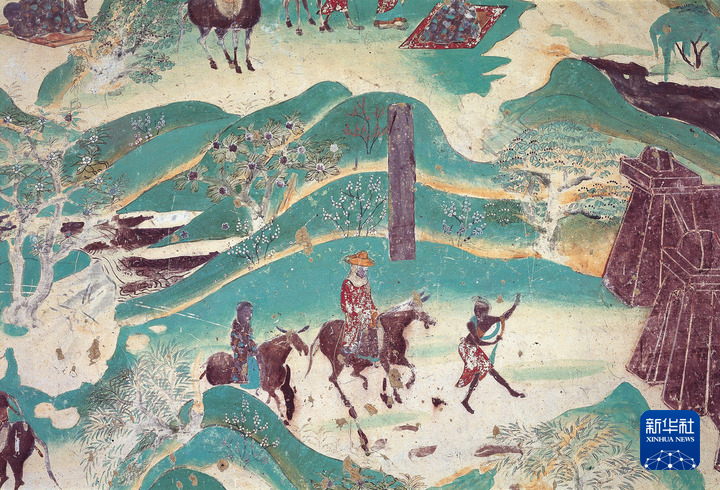 莫高窟第217窟-南壁西側-春山踏青-盛唐。(敦煌研究院供圖)