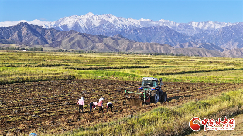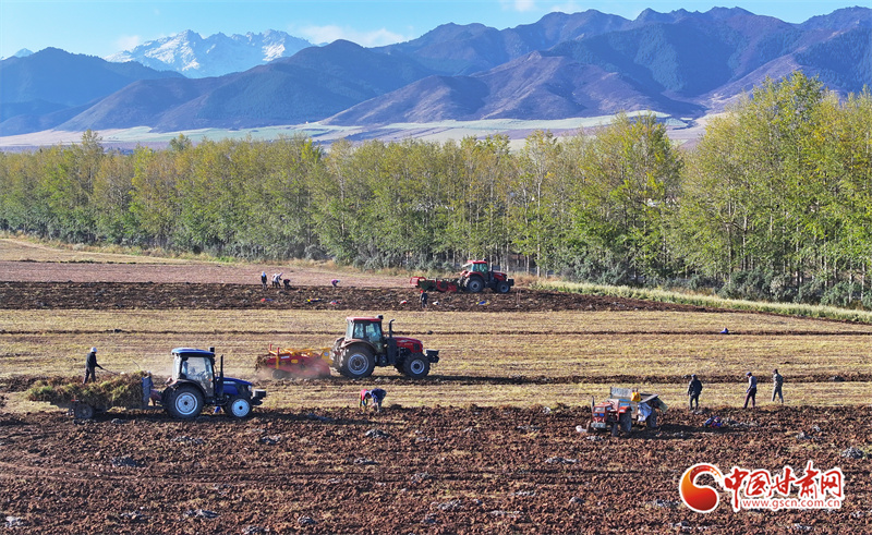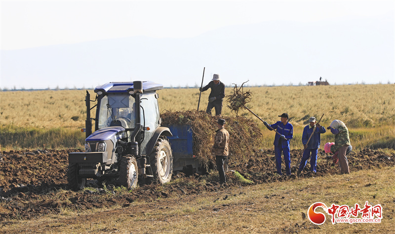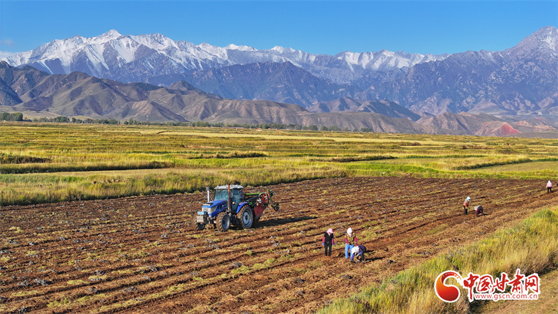 10月7日,位于祁連山腳下的張掖市民樂縣南豐鎮(zhèn)張連莊村的千畝黃芪種植基地,藥農(nóng)們忙著采收黃芪,田間地頭一派豐收的繁忙景象。