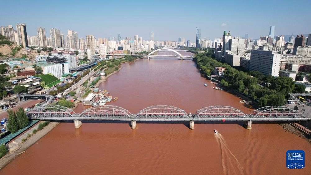 這是黃河蘭州段首座鋼構(gòu)橋梁——金雁黃河大橋(9月23日攝,無(wú)人機(jī)照片)。新華社記者陳斌攝