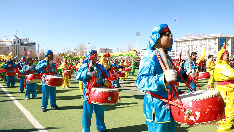 “瓜州縣梁湖鄉(xiāng)社火隊(duì)給全縣人民拜年了!祝全縣人民身體健康,萬(wàn)事如意、闔家歡樂(lè)!”瓜州縣梁湖鄉(xiāng)社火隊(duì)演員米加仁說(shuō)。