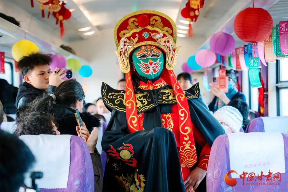 刺繡、陶藝、剪紙、做燈籠、吃湯圓……車站工作人員還邀請非物質(zhì)文化遺產(chǎn)傳承人用傳統(tǒng)的精妙技藝呈現(xiàn)熱鬧非凡的元宵。喜慶的龍形燈籠、五顏六色的字謎、鮮艷的中國結(jié)裝飾品掛滿車廂;舞蹈串燒、歌曲演唱、川劇變臉,處處洋溢著濃濃的節(jié)日氛圍,一路歡歌、掌聲不斷,讓旅途滿載文化馨香。