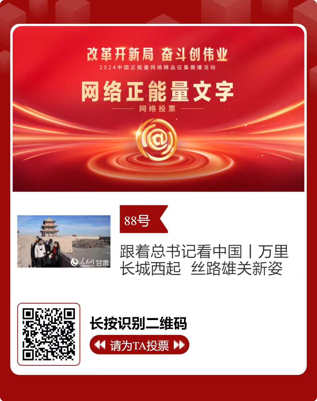 2024中國正能量網(wǎng)絡精品,嘉峪關入圍作品邀您投票!