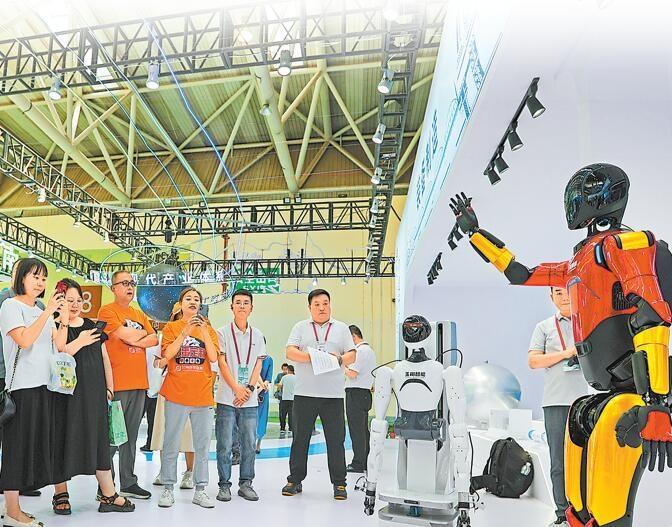 蘭州館內(nèi),參觀者與機(jī)器人展開互動。本組圖片攝影:新甘肅·甘肅日報記者 田蹊