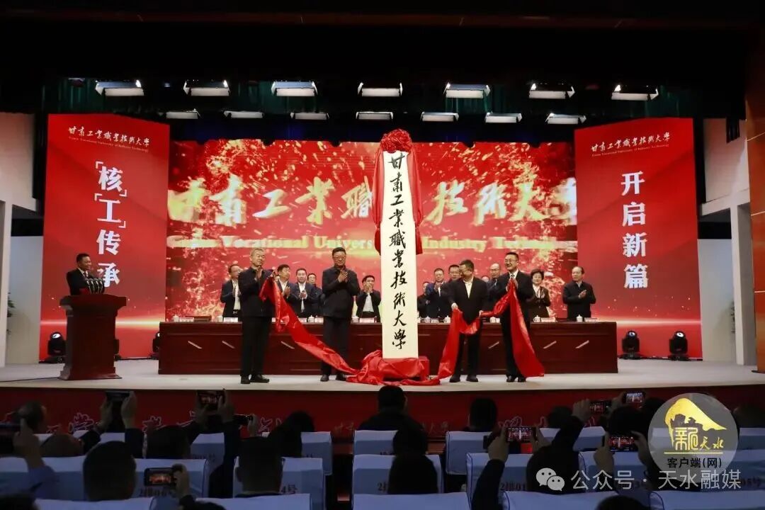 10月16日,甘肅工業(yè)職業(yè)技術(shù)大學(xué)高質(zhì)量發(fā)展大會(huì)暨揭牌儀式舉行。市委主要領(lǐng)導(dǎo)與工業(yè)和信息化部教育與考試中心、教育部學(xué)校規(guī)劃建設(shè)發(fā)展中心、省教育廳相關(guān)領(lǐng)導(dǎo)共同為甘肅工業(yè)職業(yè)技術(shù)大學(xué)揭牌。省委機(jī)構(gòu)編制委員會(huì)、省委軍民融合辦、市政府主要領(lǐng)導(dǎo)及分管領(lǐng)導(dǎo)、省職教協(xié)會(huì)以及兄弟院校代表、合作企業(yè)代表等出席揭牌儀式。