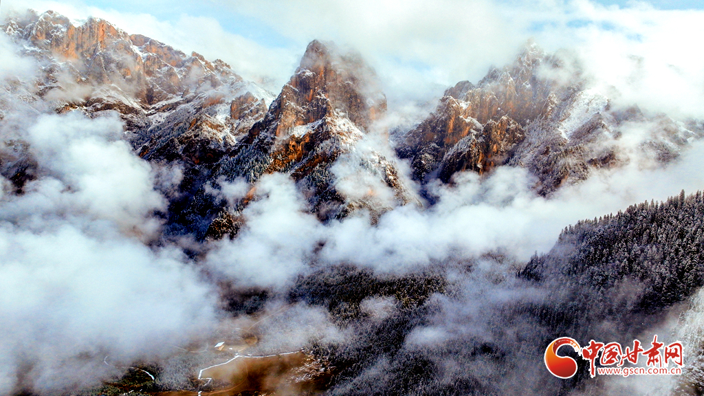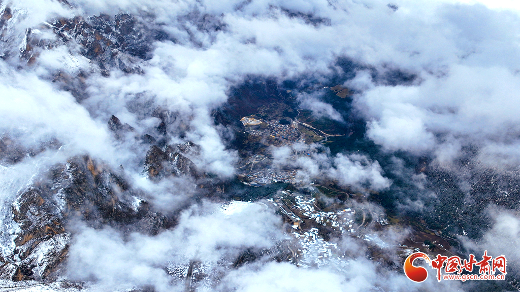 11月9日,雪后的甘南州迭部縣扎尕那景區(qū)銀裝素裹,云霧繚繞。巍峨山峰覆上新雪,古樸藏寨靜臥于皚皚雪野之間,嶙峋石林與繚繞云霧相映成趣,勾勒出一幅靜謐壯麗的高原冬日畫(huà)卷。