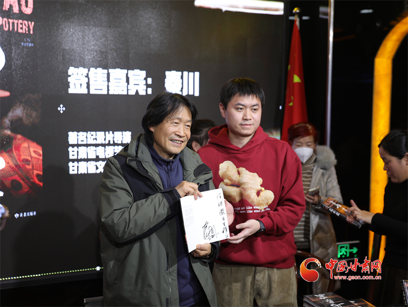 中國(guó)甘肅網(wǎng)11月24日訊 11月23日,《馬家窯·彩陶上的中國(guó)》公益展映暨同名圖書首場(chǎng)線下簽售在蘭州舉行。導(dǎo)演秦川親臨現(xiàn)場(chǎng),與紀(jì)錄片愛好者近距離互動(dòng)交流,分享紀(jì)錄片背后的創(chuàng)作故事,并為讀者簽售、分享新書。