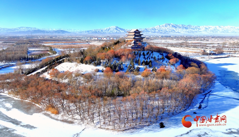11月24日,一場(chǎng)瑞雪過后,臨澤大地銀裝素裹。朱紅殿宇與皚皚祁連山相映成趣,繪就獨(dú)特意境。雙泉湖雖覆薄冰,卻有成群天鵝游弋,潔白的身影在冰面與雪色間穿梭,為靜謐的冬日注入生機(jī)。