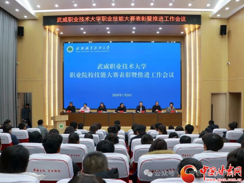 中國甘肅網(wǎng)1月11日訊(西北角·中國甘肅網(wǎng)記者 張振國)1月9日,武威職業(yè)技術(shù)大學召開職業(yè)院校技能大賽表彰暨推進工作會議。黨委書記王宏出席會議并講話。在家校領(lǐng)導班子成員、各學院(部)及職能部門負責人、獲獎師生代表以及備戰(zhàn)2026年大賽的師生代表共同參會。校長李海軍主持會議。