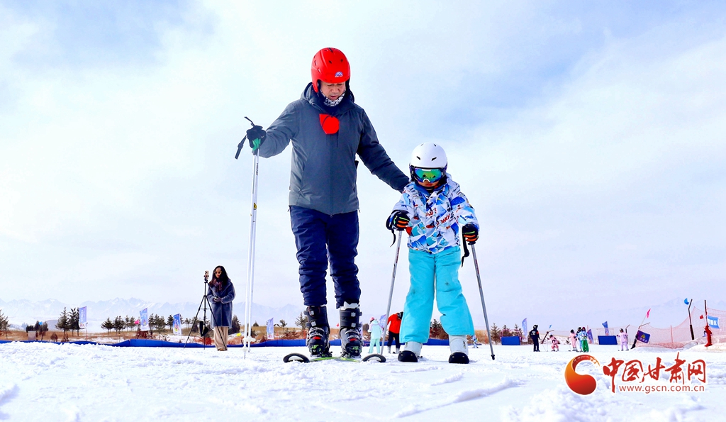 1月24日,在張掖肅南裕固族自治縣的康樂草原祁連山滑雪場,冰雪愛好者和游客攜孩子一同迎風(fēng)馳雪,樂享冰雪運動的激情。他們在運動中強健體魄、磨煉意志,同時迎接即將到來的新春。