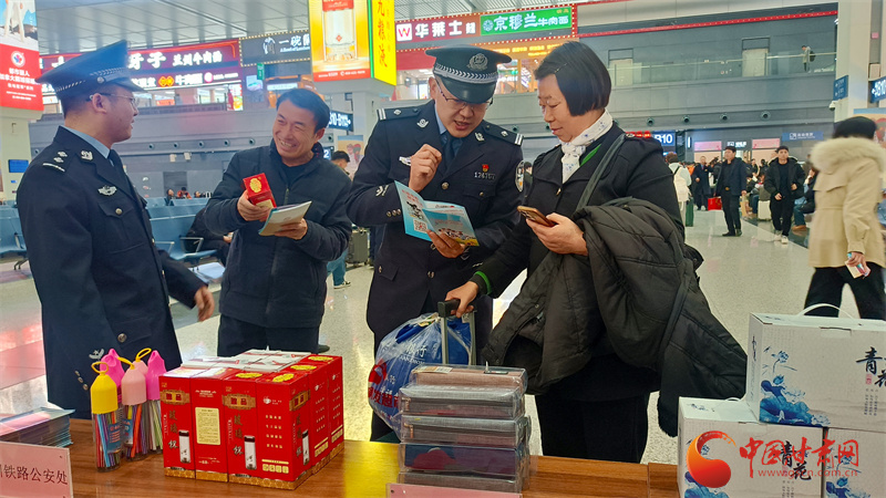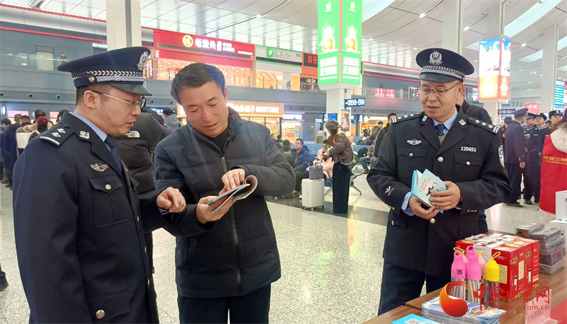 上午9時,蘭州西站候車大廳內(nèi)暖意融融、人流有序。一場簡短而溫馨的文藝表演拉開了活動序幕,為匆匆旅途增添了濃厚的節(jié)日氛圍與人文關(guān)懷。隨后,聚焦春運(yùn)核心主題,蘭州西站派出所開展“平安相伴·鐵警相隨”主題安全宣傳活動。民警在法治宣傳展臺前,耐心細(xì)致地向旅客講解最新鐵路安全管理規(guī)定、禁限帶物品目錄以及電子客票使用須知等內(nèi)容,并發(fā)放宣傳資料,現(xiàn)場解答疑問,助力旅客平安出行。