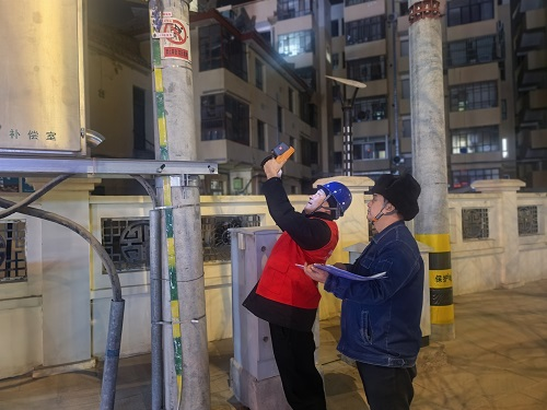 “10千伏124北西線03號開關(guān)設(shè)備紅外測溫正常……”在夜巡過程中,工作人員手持紅外測溫儀,沿著線路及配變逐桿逐段進(jìn)行仔細(xì)檢查,重點對變壓器、斷路器、熔斷器等設(shè)備進(jìn)行測溫,對接頭、線夾、刀閘等易發(fā)熱部位進(jìn)行了詳細(xì)檢查,及時掌握設(shè)備運行情況,不放過任何一個可能存在的安全隱患。對于夜巡過程中發(fā)現(xiàn)的隱患,工作人員做到了及時登記,及時整改,絕不拖延;對于不能現(xiàn)場整改的隱患,則制定了詳細(xì)的整改計劃,并列入問題清單,以便集中整改落實,切實做到隱患缺陷早發(fā)現(xiàn)、早處理。