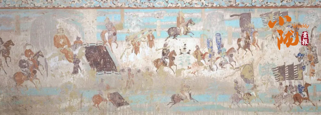 在甘肅璀璨的石窟藝術(shù)中,馬早已超越了具象的生靈,化作融入筆墨丹青的文化靈韻。莫高窟的壁畫里,馬的形象栩栩如生、各具風(fēng)情:西魏249窟的青藍(lán)色翼馬,肩生雙翼、身姿輕盈,與仙人并肩起舞,藏著古人對(duì)天空與自由的向往;晚唐12窟的作戰(zhàn)圖中,戰(zhàn)馬披甲馳騁、泅水掙扎,真實(shí)還原了古戰(zhàn)場(chǎng)的慘烈與悲壯;盛唐時(shí)期的駿馬畫像,體態(tài)雄壯、氣度軒昂,每一筆勾勒都藏著時(shí)代的審美與家國(guó)情懷。