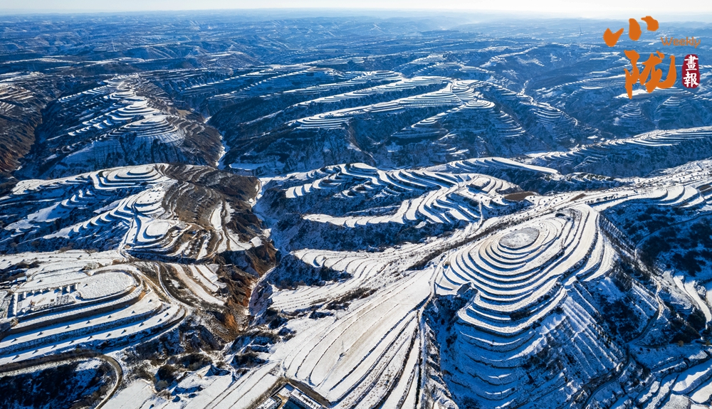 塬上樹木被雪輕輕點染,披上素白衣裳,與覆雪的梯田虛實相映,構(gòu)成一幅疏密有致、氣韻生動的天然水墨畫,靜置于蒼茫天地間。