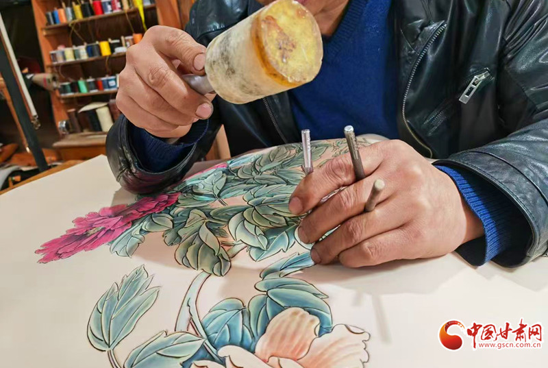 在高重民的眾多作品中,紫斑牡丹系列掛畫是他的心頭所愛。紫斑牡丹是中原牡丹的起源,在臨洮有著深厚的自然與人文積淀,而牡丹作為國(guó)花,更承載著中國(guó)人對(duì)富貴、圓滿、繁榮的美好寄寓。“帶著對(duì)家鄉(xiāng)文化的熱愛,還有對(duì)牡丹情懷的敬重,我創(chuàng)作了這一系列作品,希望用皮雕技藝,把這份根植于故土的美好長(zhǎng)久留存。”高重民談及這份作品,滿是深情。
